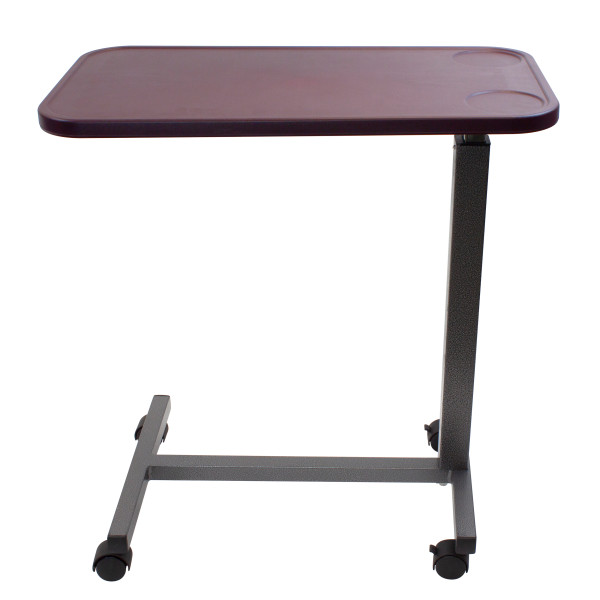 The Dynarex Plastic-Top Overbed Table is durable and constructed for maximum convenience. The tabletop is constructed from impermeable plastic, to allow for sanitation practices without the risk of warping. The tabletop includes two convenient cupholders and ridged perimeter edges for added convenience and reduced mess. Available in three attractive colors to match existing décor. The height-adjustable steel base is easy to operate and accommodates most standard-height beds. Simply lift the tabletop to adjust table height to a user’s personal preference and securely lock into place. The H-Base frame is designed to slide underneath the bed so users can enjoy increased access to their meals and belongings from a seated or reclining position. Often used at home, in long-term care facilities, hospitals, and more.