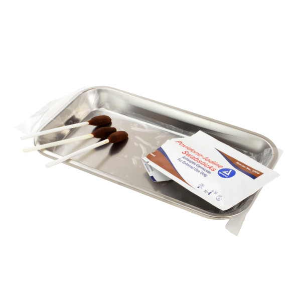 Each swab is saturated with 10% povidone-iodine solution