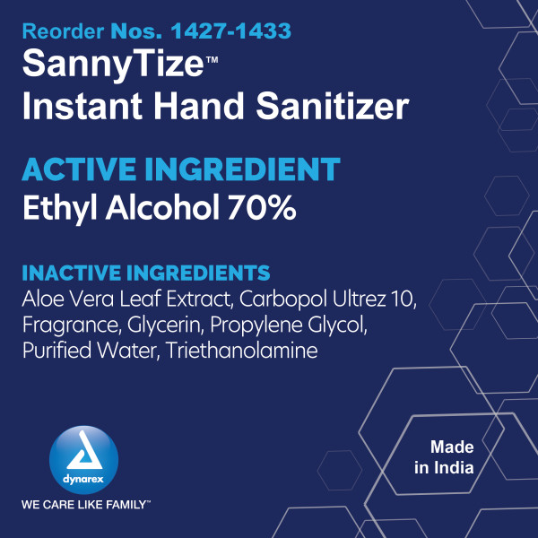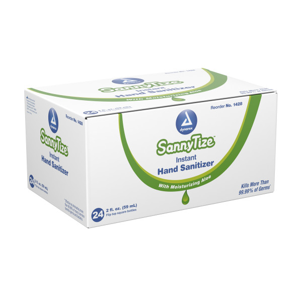 Dynarex Sannytize Instant Hand Sanitizer is an alcohol-based disinfectant gel that eliminates more than 99% of germs and bacteria. The liquid formula evaporates completely in just a few seconds. The sanitizer is infused with aloe vera to help soothe and moisturize skin. A variety of Dynarex SannyTize products are currently available; including pump bottles, to-go packets, textured wipes, and more.