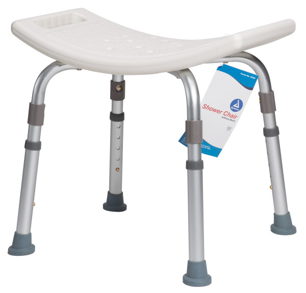 The Dynarex Shower Chair without Back provides a reliable seated option for individuals who need added support while bathing. The ergonomic design features corrosion-proof aluminum and a comfortable molded seat. Ideal for a wide range of homecare and institutional healthcare environments.