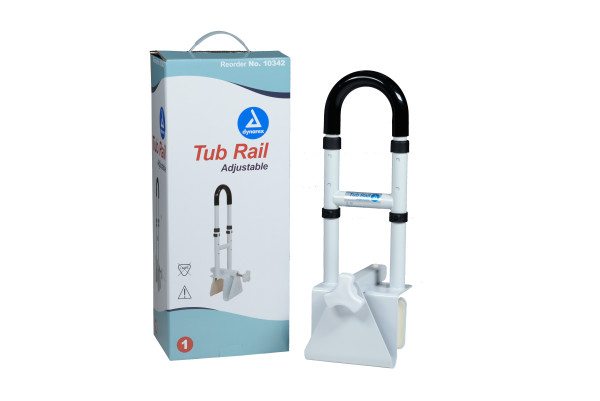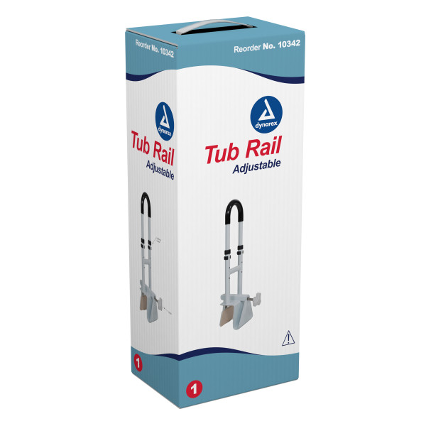 The Dynarex Adjustable Tub Rail is constructed from durable steel and offers stability while entering and exiting bathing areas. The rail is height adjustable to accommodate a wide range of users and an adjustable width locking mechanism designed to easily attach to most tubs. The grip handle enables users to grip the rail easily and securely. Ideal for use in homecare settings and more.