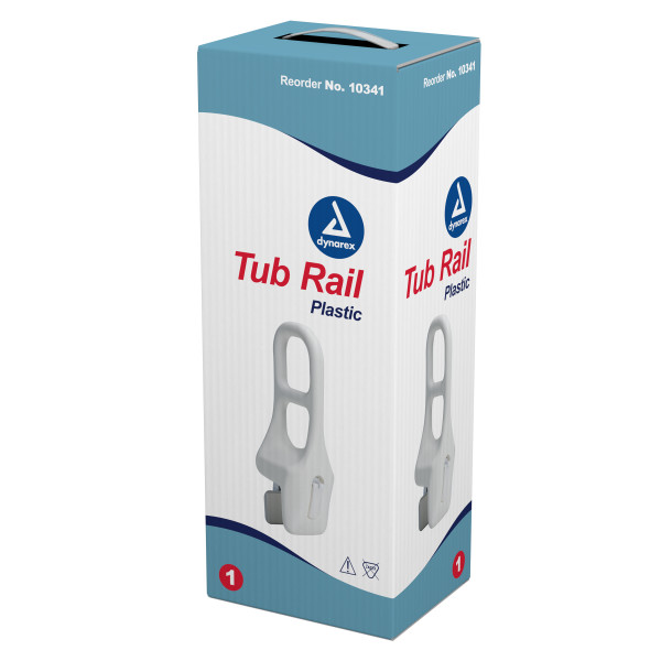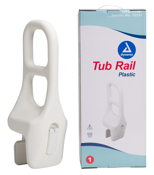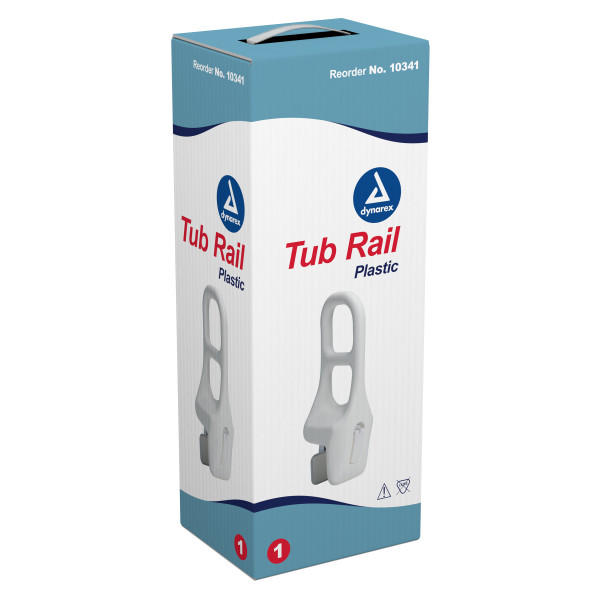 The Dynarex Plastic Tub Rail offers support to individuals who need assistance in moving in or around the bathtub. The rail features tool-free installation and an adjustable locking clamp to fit most tubs. Ideal for a wide range of homecare and institutional healthcare environments.